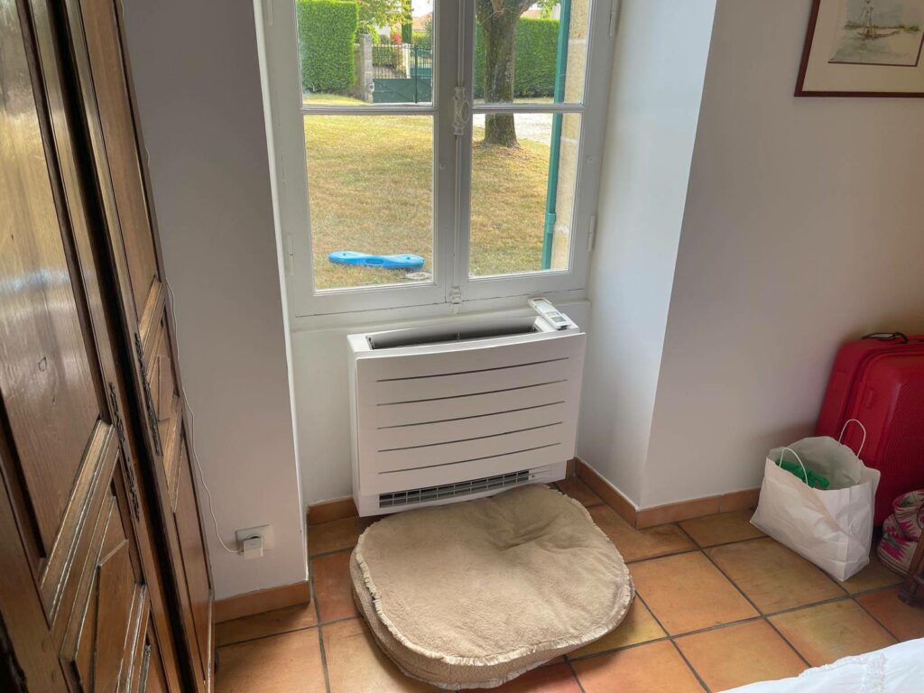 Pour connecter les différentes unités consoles au système VRV, un boîtier BMPKS a été installé dans un placard technique. Ce dispositif centralise la gestion des unités, offrant ainsi un contrôle précis et indépendant de la température dans chaque pièce. Les consoles, élégantes et performantes, ont été positionnées dans les pièces principales pour un confort optimal tout en s’adaptant harmonieusement à l’intérieur rénové.